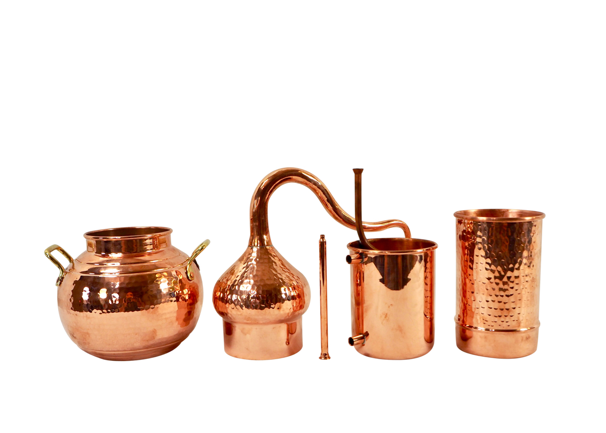 Kupfer weist eine gute Wärmeübertragung auf und ist antibakteriell, so dass die Hydrolate länger haltbar sind