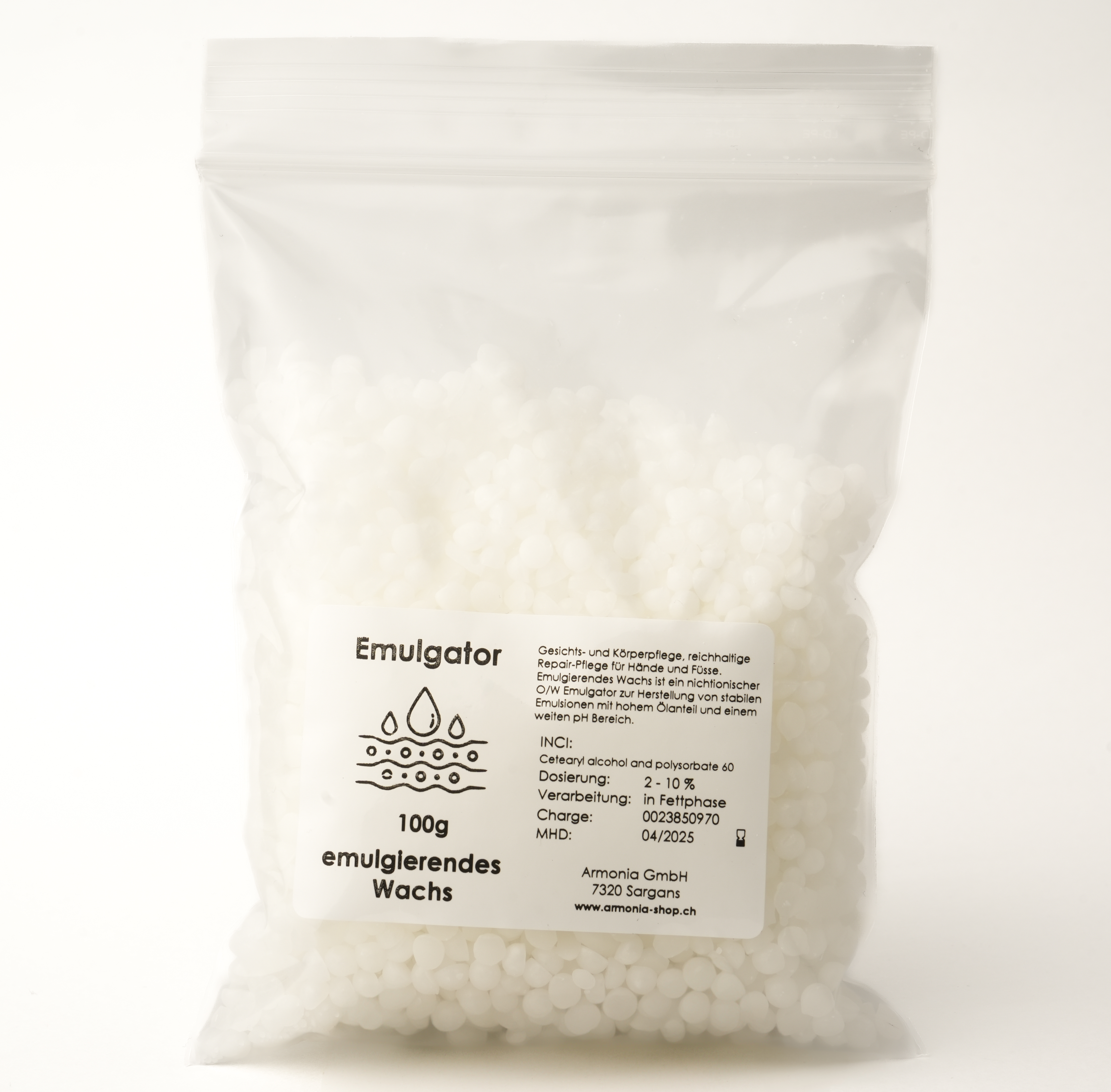 Aussehen: weiss wachsartige Pellets / Perlen