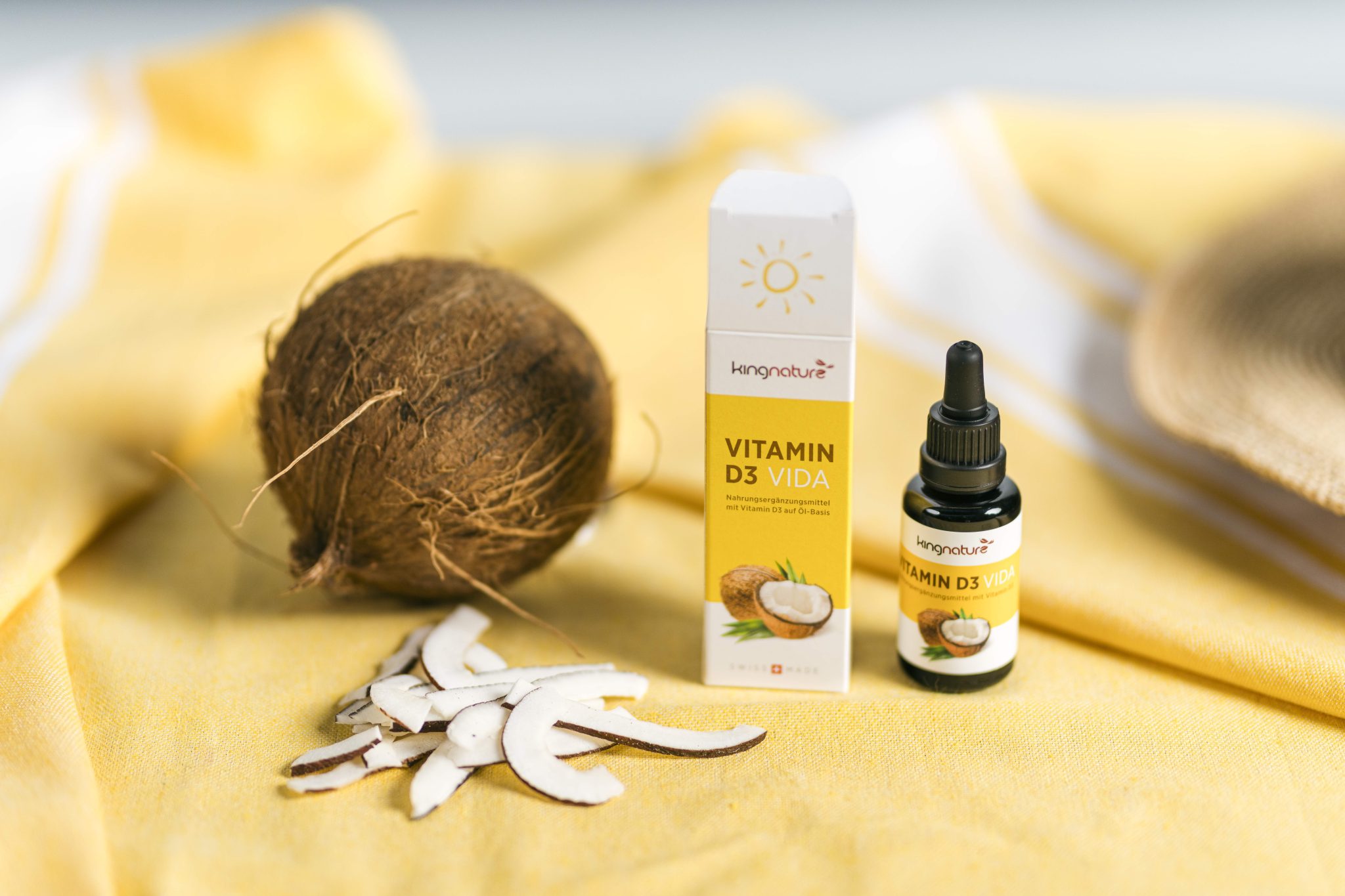 Vitamin D3 ist eine fettlösliche Substanz. Damit es vom Körper aufgenommen werden kann, muss es zusammen mit etwas Fett eingenommen werden. Mit dem Kokosöl in Vitamin D3 Vida ist dies gegeben.