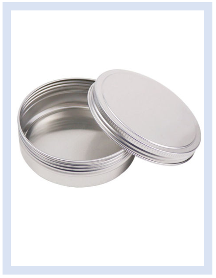 Flache Schraubdose aus Aluminium. Erhältlich in verschiedenen Grössen. Ideal für Pasten, Salben, Massagekerzen und Cremes. 50ml Angaben: D=56mm/H=23mm 100ml Angaben: D=75mm/H=23mm 150ml Angaben: D=92mm/H=23mm 250ml Angaben: D=116mm/H=27mm